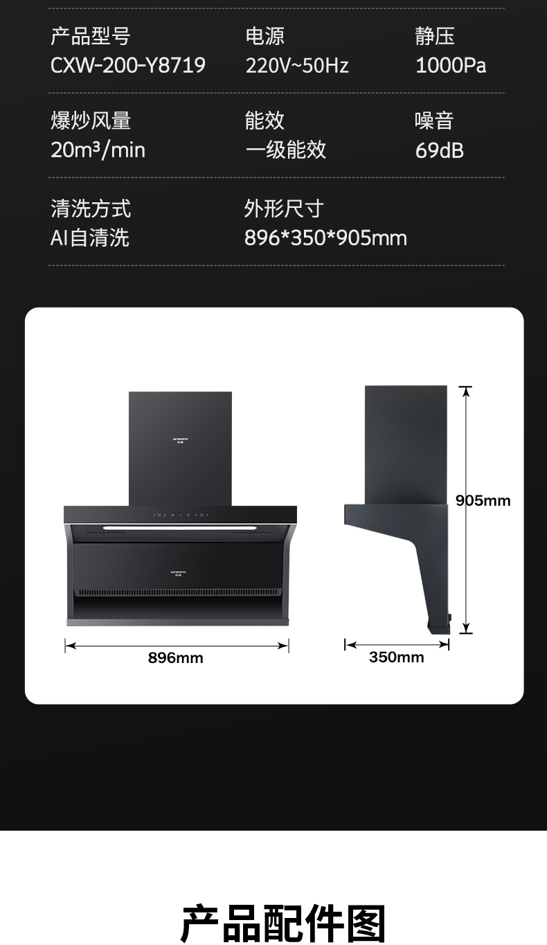 - 最大靜壓值1000Pa